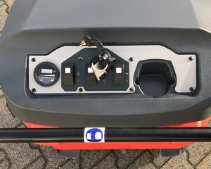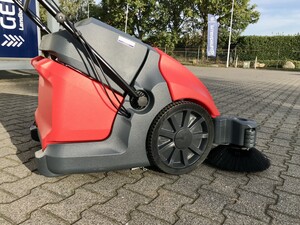 Levering van een Meclean Buster 950E Pro elektrische veegmachine, deze veegmachine heeft een werkbreedte van 110cm en een veegcapacteit tot maarliefst 4400 m²/uur!
