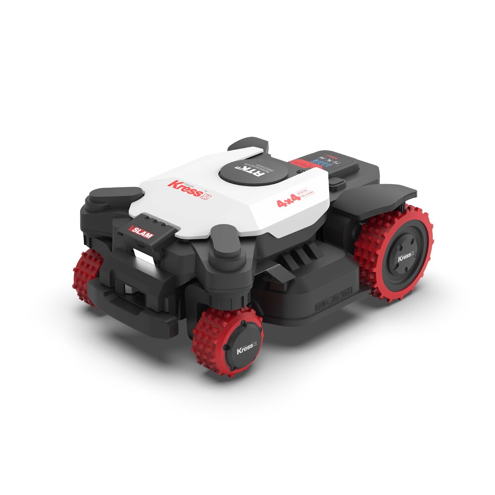 - Geen perimeterdraad of eigen antenne: Dankzij de EyePilot-technologie en het Kress RTK-netwerk navigeert de maaier tot op de centimeter nauwkeurig zonder dat er kabels of fysieke bakens in uw tuin nodig zijn.